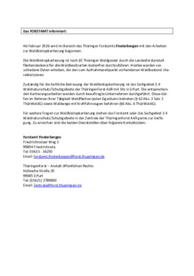 Information des Forstamtes Finsterbergen zur Waldbiotopkartierung ab Februar 2026