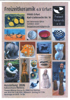 Ausstellung in der Tourist-Information - Freizeitkeramik e.V. Erfurt 30.05. - 21.06.2026